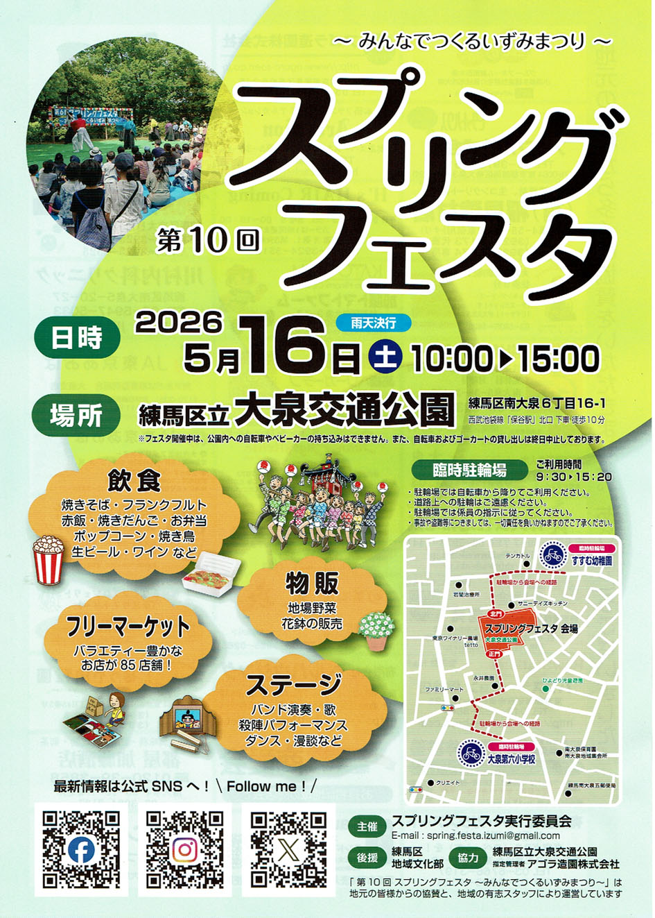 令和8年 5/16(土)第10回「スプリングフェスタ」開催に伴い、自転車、ゴーカートの貸出しは中止となります。あらかじめご了承くださいますようお願い申し上げます。